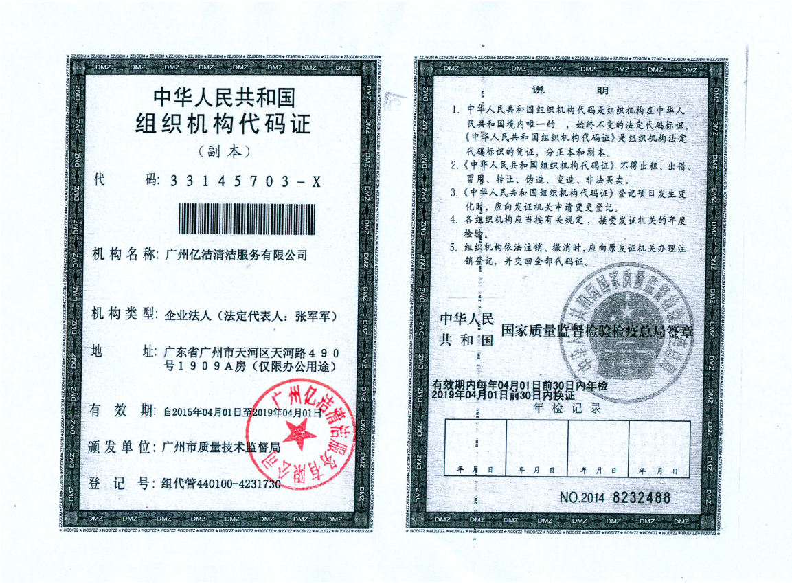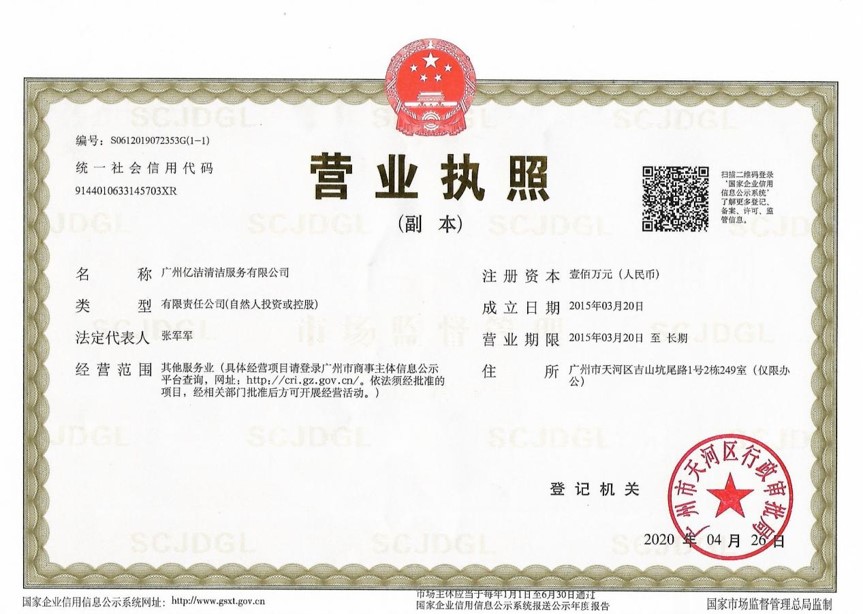 廣州億潔清潔服務(wù)有限公司是經(jīng)廣州市工商行政管理局批準(zhǔn)成立的(注冊(cè)資本:100萬(wàn)元人民幣)。具有獨(dú)立法人資質(zhì)。公司成立2015年,公司具備完善的管理體系和高素質(zhì)管理隊(duì)伍,擁有特種技術(shù)人員33名,保潔服務(wù)人員上萬(wàn)名,覆蓋廣州市,能及時(shí)調(diào)配并快速投入高效運(yùn)行。我們的每個(gè)員工都經(jīng)過(guò)公司的嚴(yán)格篩選,嚴(yán)格培訓(xùn),定期培訓(xùn)后持證上崗以保證服務(wù)品質(zhì),保障客戶的權(quán)利,利益,形象等不受損失。 廣州億潔清潔公司是一家設(shè)備齊全,技術(shù)強(qiáng)大的綜合型清潔服務(wù)公司,為客戶提供完善服務(wù)尊定了堅(jiān)定的基礎(chǔ)。 司于2010年全面推行了ISO9001質(zhì)量管理體系認(rèn)證和ISO14001國(guó)際環(huán)保體系認(rèn)證。先后獲得廣州高層建筑外墻清洗維修作業(yè)【安全資質(zhì)證書】、【廣州環(huán)衛(wèi)企業(yè)等級(jí)證書C級(jí)資質(zhì)】、廣州疾控中心頒發(fā)的【四害消殺服務(wù)資質(zhì)證】、【空氣治理A級(jí)資質(zhì)】、中國(guó)石材協(xié)會(huì)頒發(fā)的【石材資質(zhì)B級(jí)資質(zhì)】等。 廣州億潔清潔服務(wù)有限公司致力于打造專業(yè)、實(shí)惠、靠譜的保潔服務(wù)公司,把專業(yè)的事情交給專業(yè)的我們,您放心! 億潔清潔服務(wù)項(xiàng)目: 廣州保潔服務(wù):新建樓宇、別墅、酒店、醫(yī)院、辦公樓、賓館、企事業(yè)單位廠房竣工后開(kāi)荒及裝修后精細(xì)保潔.工程保潔服務(wù)。 廣州物業(yè)托管:為廣州市各大企事業(yè)單位、賓館、政府機(jī)關(guān)、小區(qū)物業(yè)、酒店及廠房提供專業(yè)化保潔、園林、設(shè)施維護(hù)等管理服務(wù)。 廣州高空作業(yè):高空玻璃幕...[詳情]